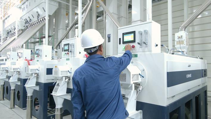 整條生產(chǎn)線采用5G+物聯(lián)網(wǎng)技術(shù),串聯(lián)起從原料入倉到去石、礱谷、篩分、碾米、拋光、色選等35道工序,實現(xiàn)全程自動化。昔日需要10余人值守的車間如今僅需兩名員工。